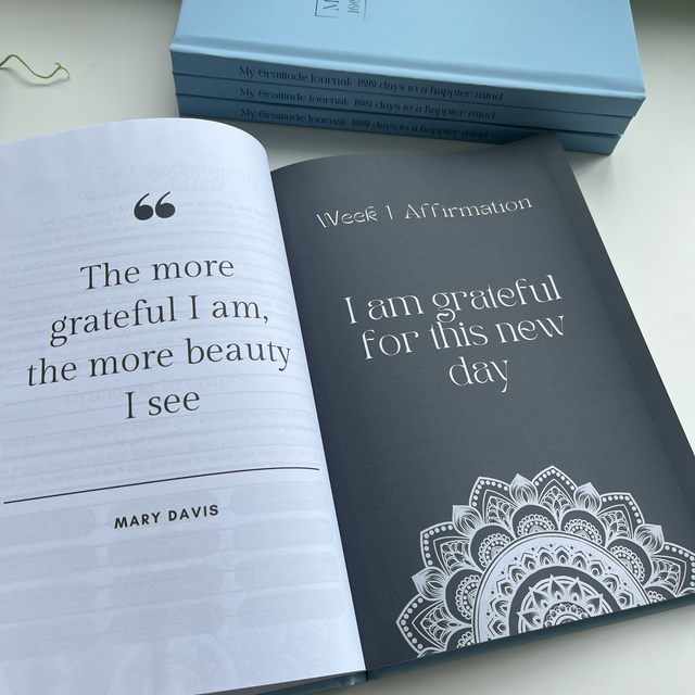 This Gratitude Journal has one page per day with space for you to add your gratitude reflections of the day take a look at any challenges you may have faced and also a space to jot down reminders for the next day. It contains spaces to reflect on your progress, see gratitude in all areas of your life and includes an affirmation for each new week.